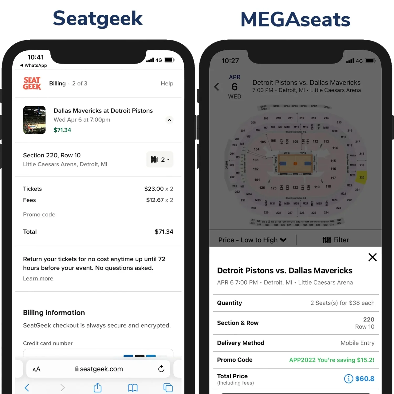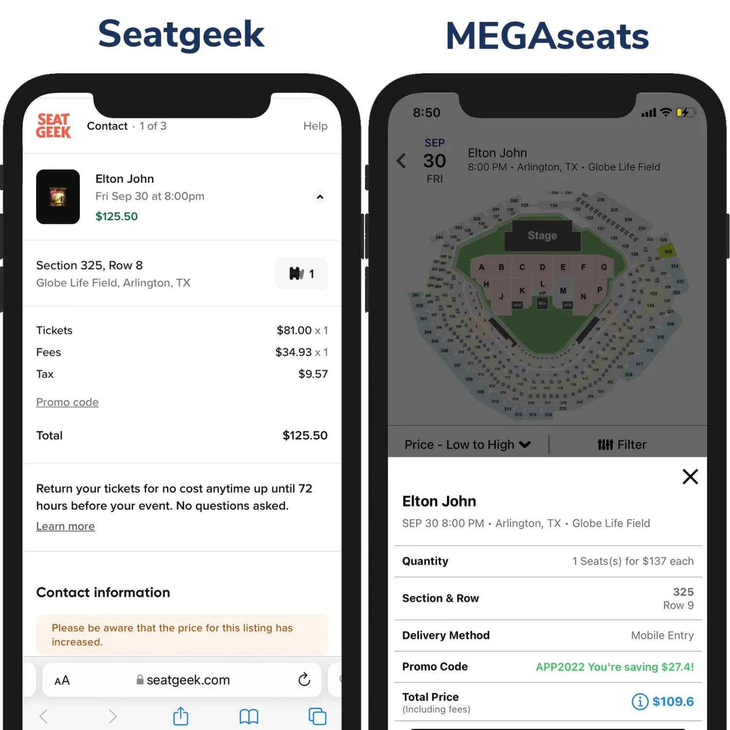 MegaSeats always shows you the final price up front. We aren't trying to fool you. What you see is what you pay. When you compare the final price you'll pay on MegaSeats versus our competitors,