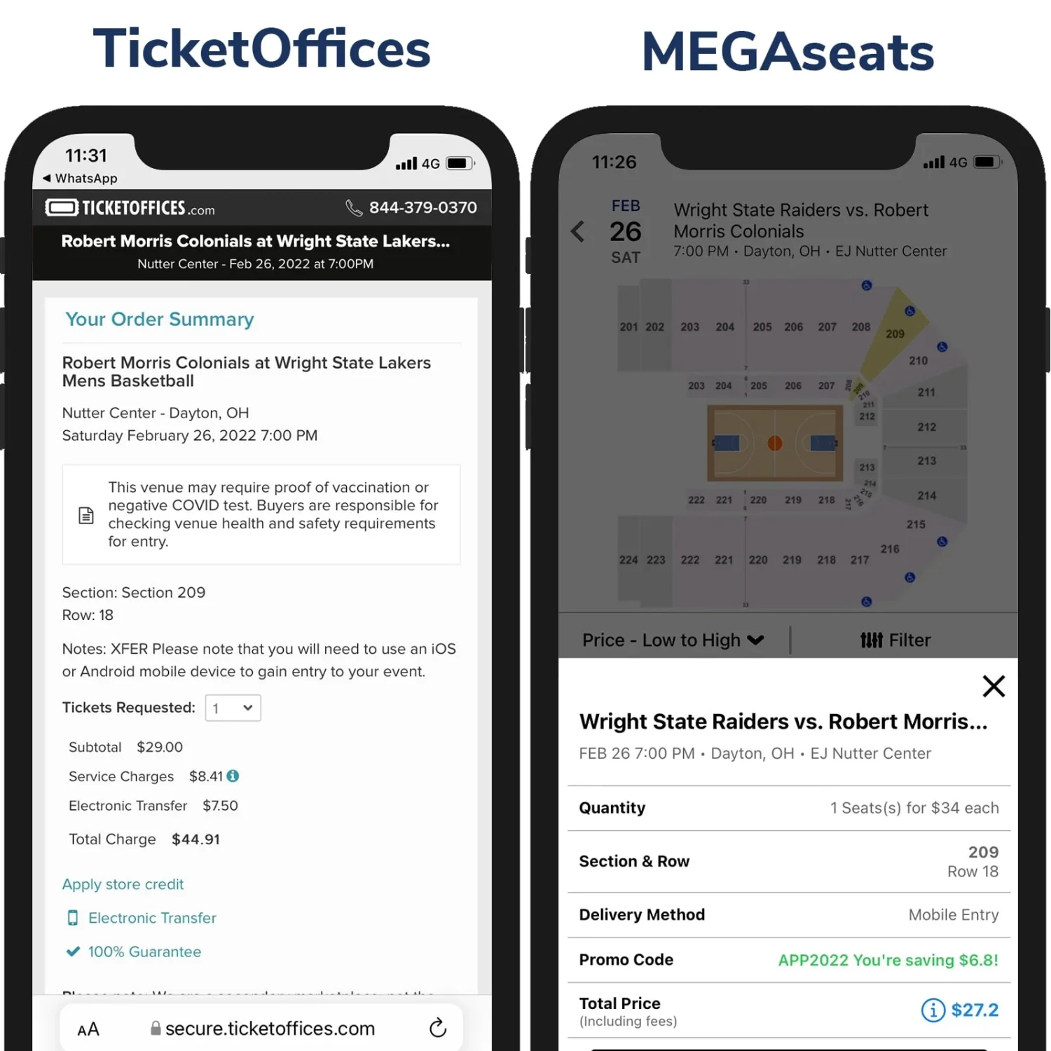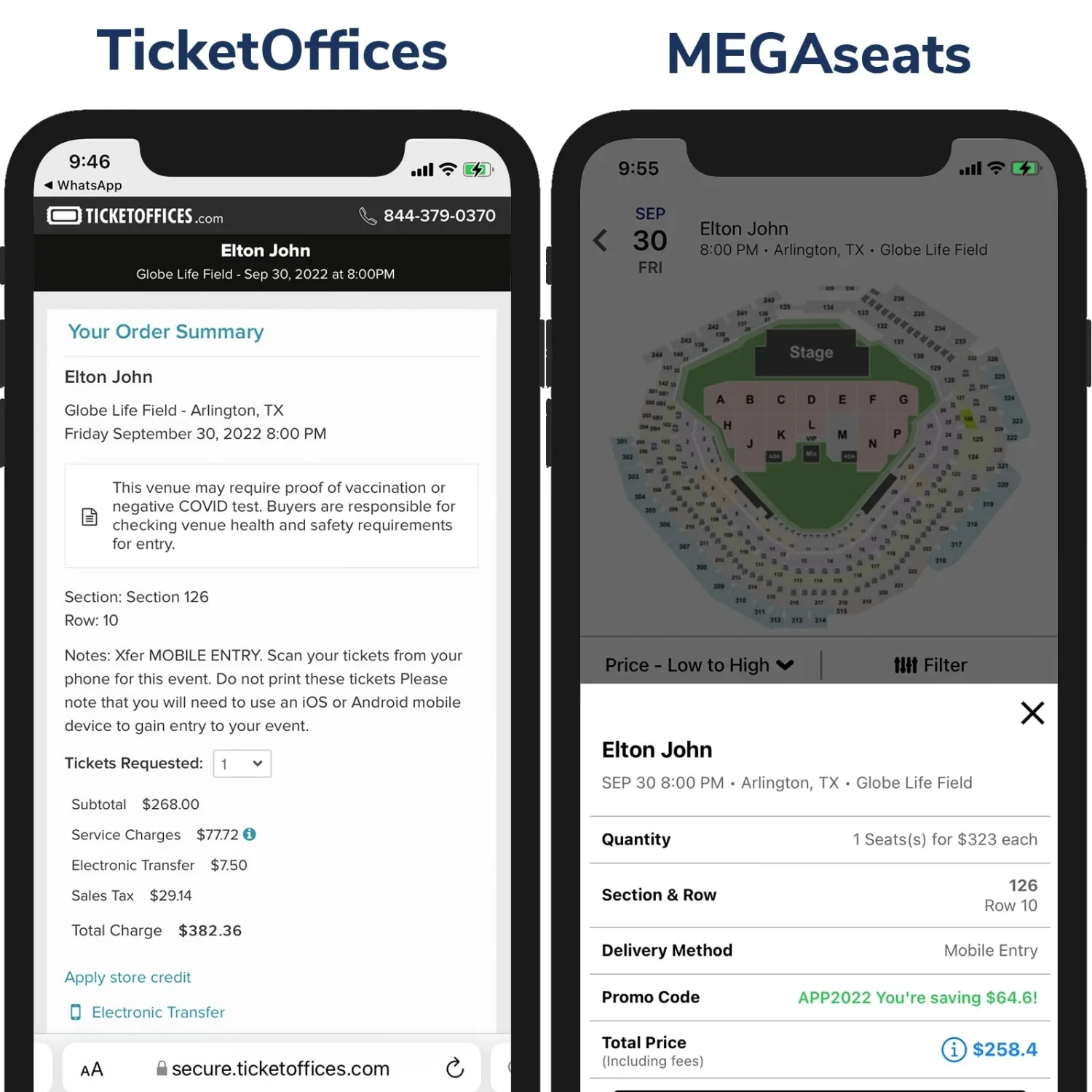 set a low price on their site than on MegaSeats a No Fees Site.