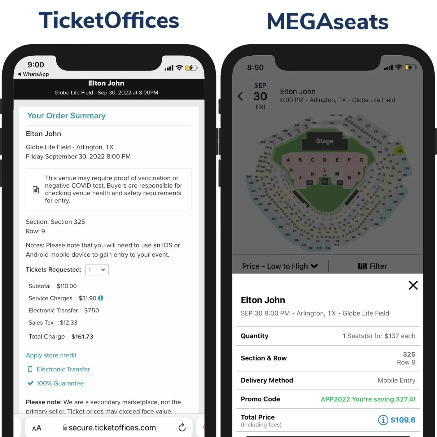 MegaSeats always shows you the final price up front. We aren't trying to fool you. What you see is what you pay. When you compare the final price you'll pay on MegaSeats versus our competitors,